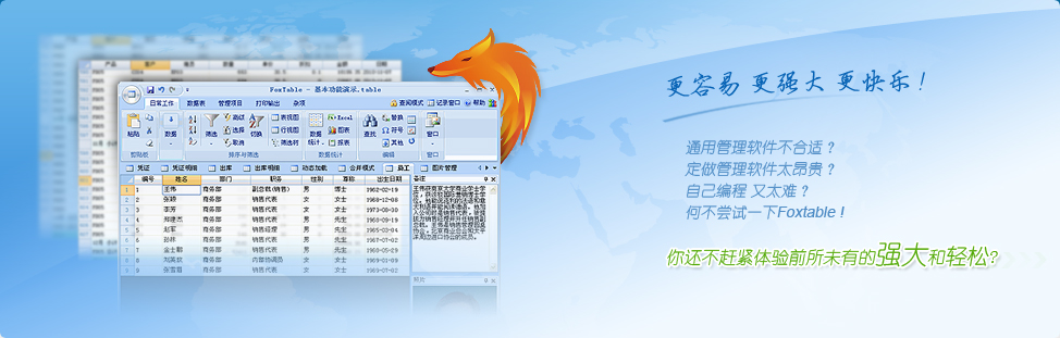 Foxtable不僅是一個優(yōu)秀的應(yīng)用軟件,同時又是一個高效率的開發(fā)工具,幾乎人人都能掌握。普通人也能開發(fā)出讓資深程序員目瞪口呆的軟件,不再是天方夜譚。